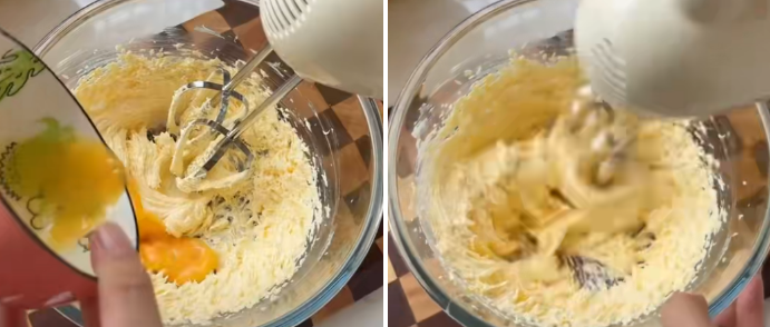 - 65g软化好的黄油或椰子油、40g糖粉 - 用打蛋器或或搅拌机 搅拌至发白