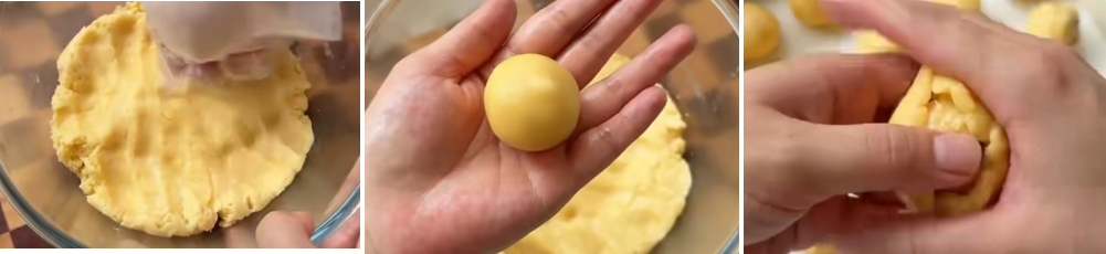 - 按压平整后,放在冰箱冷藏20分钟后,分成12等分,戳成小圆球